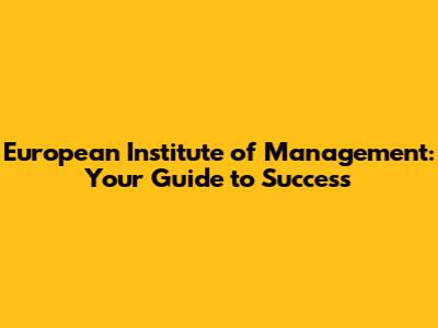 European Institute Of Management: A Comprehensive Guide