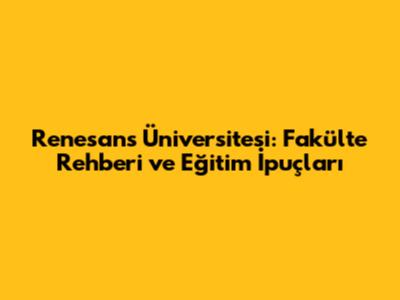 Renesans Üniversitesi: Fakülte Rehberi Ve Eğitim İpuçları